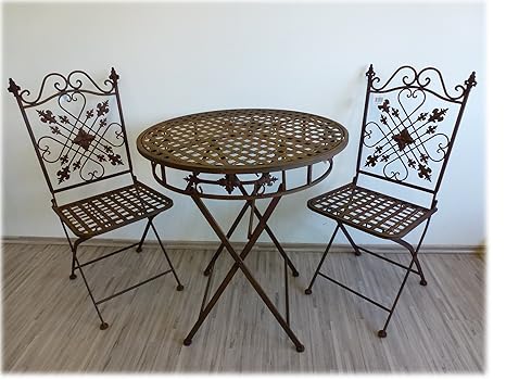 Gartenset Tisch 2 Stühle Gartengarnitur Eisen Antik Stil