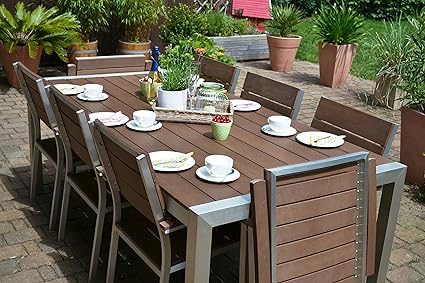 Amazon De Bomey Gartenmöbel Miami Tisch 200x100 6 Stapelstühle